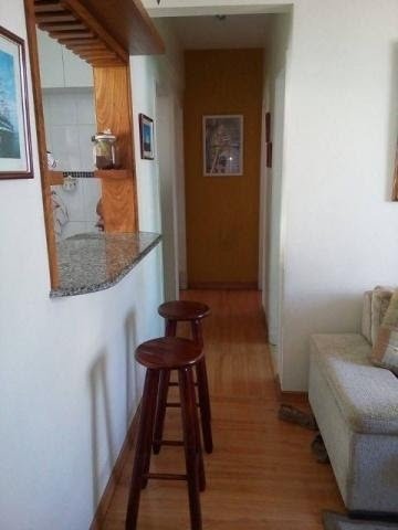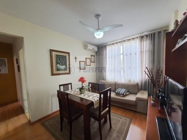 Apt. no 3º andar com 2 quartos de fundos com armários embutidos condicionador de ar e ventiladores de teto, sala com ar split, cozinha americana com todos os armários e com gás encanado, banheiro social e de empregada, piso laminado tipo madeira, sol da manhã e indevassado, portaria 24 horas monitorada com câmeras, 2 elevadores e salão de festas.