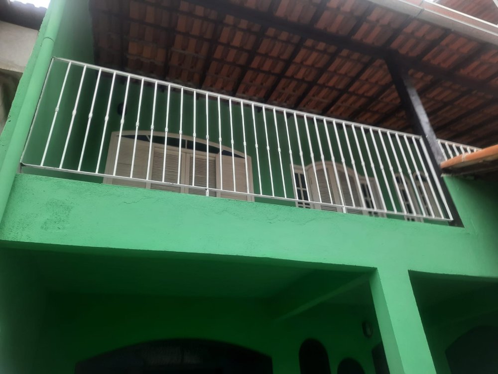 No andar superior: 3 quartos grandes, um banheiro e varanda em toda a frente.